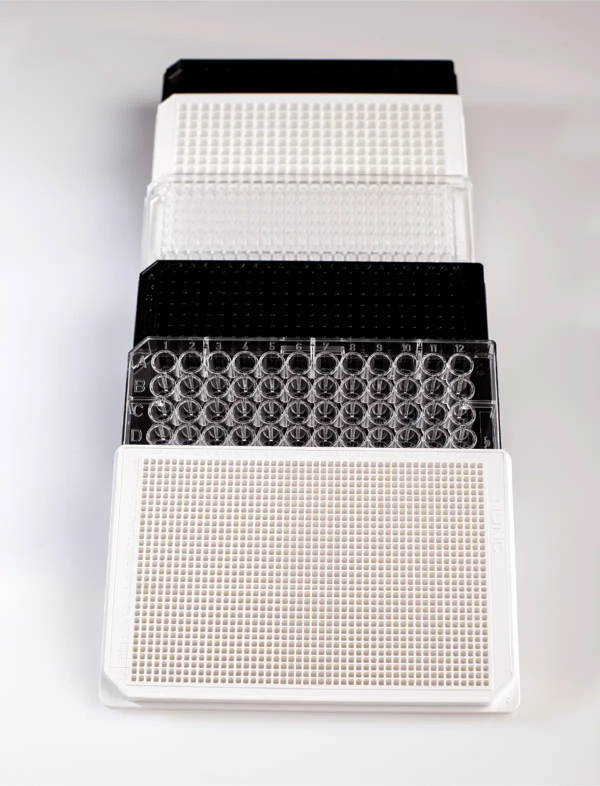 微孔板可由多种材质制成,最常用的是聚碳酸酯、聚苯乙烯和环烯烃聚合物。材质的选择会影响光线透射率、自发荧光、吸水性和气体交换等性能,进而影响微孔板的适用场景、应用范围和检测质量。